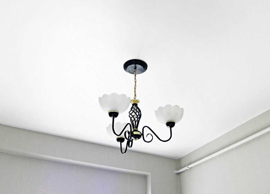 Если на очищенном потолке обнаружены неровности более 2 мм их выравнивают штукатуркой. При меньших размерах достаточно шпаклёвки, её же используют для затирки трещин. Смесь наносится шпателем с равномерным распределением по потолку.