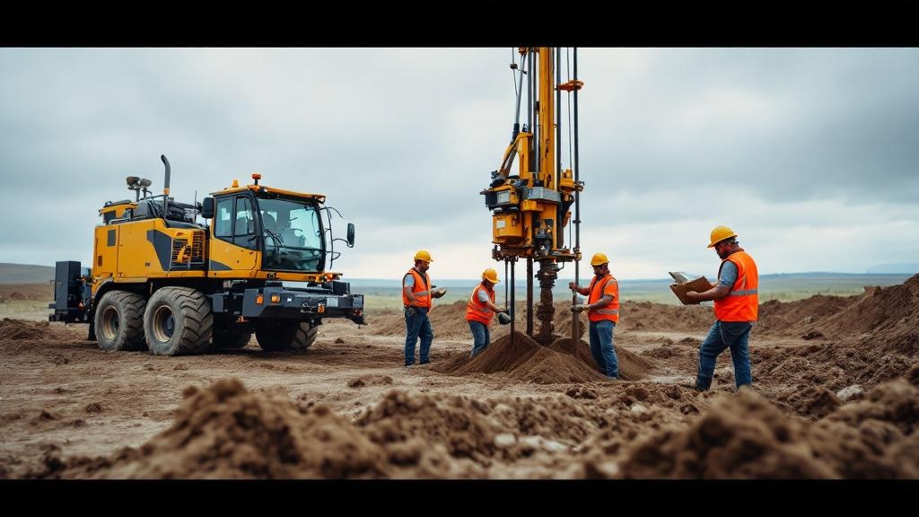 - Буровые работы — проходка скважин для отбора образцов грунта и установления геологического разреза на необходимую глубину.